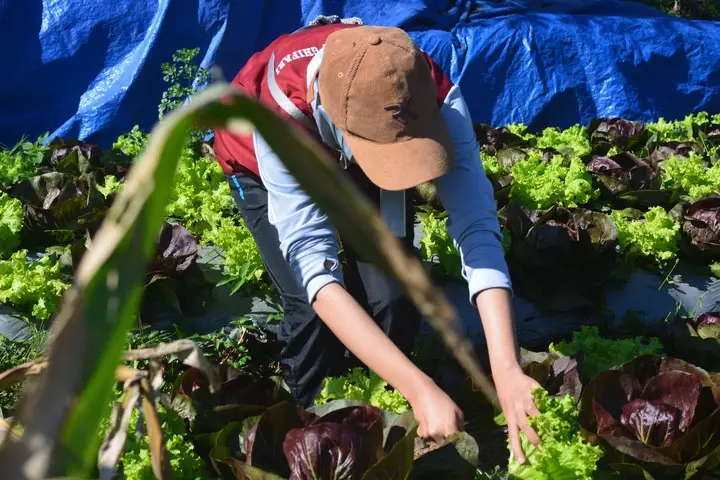 Kami mulai bekerja dan berbagi tugas, ada yg membantu menanam bibit sayuran dan juga para petani disini sering menyebutnya dengan ngabunbun, menyiram tanah yang akan ditanami oleh sayuran dan ada juga yang membantu memanen sayuran yg sudah siap panen. Petani lokal memberikan kami tips dan trik mengenai cara memanen dari mulai memotong sayuran yang benar agar tidak mudah rusak rusak dan tidak banyak yang terbuang untuk memenuhi target panen setiap minggu, serta bagaimana cara menyiram tanah sebelum ditanami dengan sayuran selain itu dari mulai persemaian sampai panen kami belajar Bersama dengan penuh suka cita. Kami bekerja sama dengan petani untuk menyemai dan memanen sayuran seperti Selada hijau, selada merah, daun bawang, kale, dan masih banyak lagi.