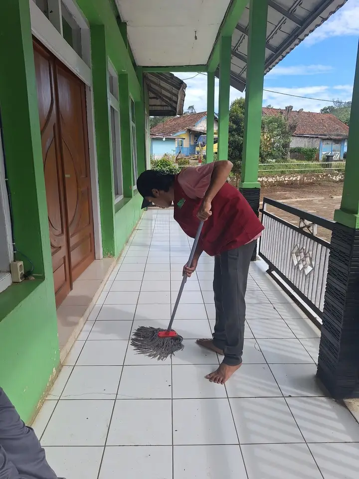 Dengan semangat tinggi, para anggota langsung bergerak membersihkan berbagai sudut masjid, mulai dari ruang utama salat, tempat wudhu, hingga area halaman. Kami membawa perlengkapan lengkap seperti sapu, pel, kain lap, ember, dan cairan pembersih. Tidak hanya membersihkan lantai dan kaca, kami juga merapikan sajadah, Al-Qur’an, dan memastikan lingkungan sekitar tetap asri dan nyaman untuk digunakan oleh jamaah.