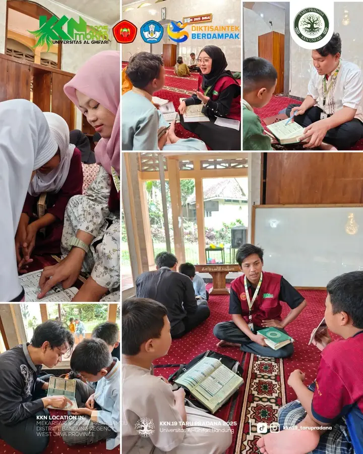 Setiap sore, para anggota Kelompok 19 secara rutin mengajar di masjid RW 9. Metode yang digunakan pun disesuaikan dengan kemampuan masing-masing anak, mulai dari pengenalan huruf hijaiyah, pembelajaran tajwid dasar, hingga hafalan surat-surat pendek. Tidak hanya itu, sesi motivasi dan cerita islami pun disisipkan untuk menumbuhkan semangat belajar dan akhlak mulia pada peserta didik.