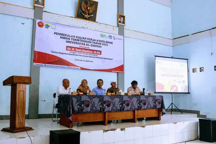 Cianjur, 2 Juni 2025 – Universitas Al-Ghifari (Unfari) hari ini menyelenggarakan kegiatan pembekalan bagi para mahasiswa peserta Kuliah Kerja Nyata (KKN) Merdeka Belajar Kampus Merdeka (MBKM) Terintegrasi tahun 2025. Acara yang berlangsung khidmat ini turut dihadiri oleh Dr. H. Tom Maskun, M.Pd., yang memberikan arahan dan motivasi kepada para mahasiswa sebelum mereka diterjunkan ke masyarakat. Uniknya, pembekalan kali ini diintegrasikan dengan Sosialisasi Peraturan Daerah (Perda) Provinsi Jawa Barat,di Desa Haurwangi, Kabupaten Cianjur, yang akan menjadi salah satu lokasi KKN.