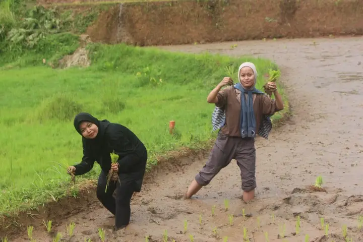 Ikut Menanam Padi: Inisiatif Mahasiswa KKN Membantu Petani di Campakamulya