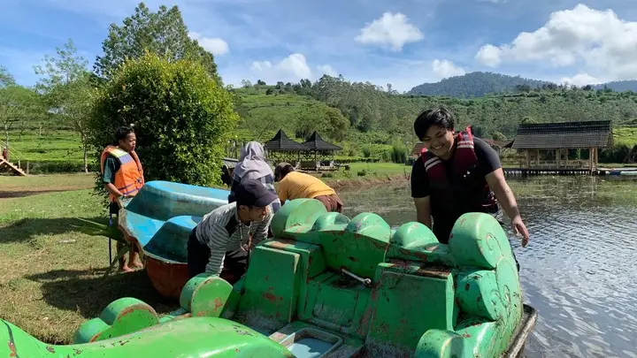 Usai kegiatan di sekolah, semangat pengabdian kami lanjutkan dengan melaksanakan aksi peduli lingkungan di Situ Cihaniwung, sebuah destinasi wisata alam yang terletak tak jauh dari sekolah. Situ ini memiliki keindahan dan potensi besar sebagai objek wisata desa, namun juga memerlukan perhatian khusus dalam hal kebersihan dan kelestarian.