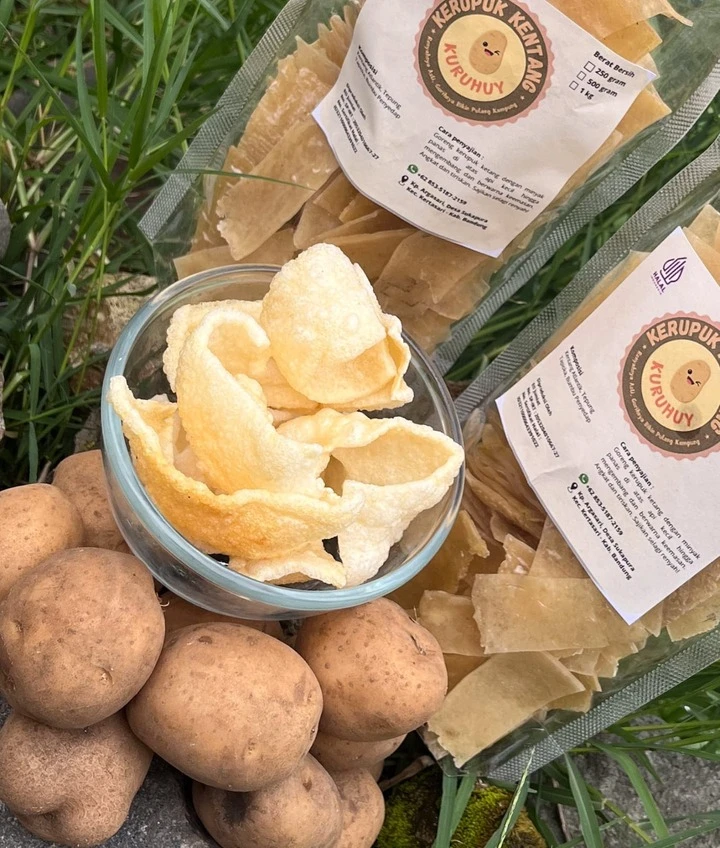 Dibuat dari kentang Atlantik pilihan yang terkenal dengan teksturnya yang lembut dan rasa yang gurih alami. Melalui proses tradisional mulai dari dikukus, ditumbuk, dileak (dibentuk tipis), dijemur alami, hingga digoreng sempurna menghasilkan kerupuk dengan tekstur kriuk yang khas dan rasa yang bikin nagih! Produk Kuruhuy – Kurupuk Hui atau Kerupuk Kentang Mamah Eti ini hadir dalam beragam varian rasa, seperti original, balado, keju, dan pedas mantap. Tanpa bahan pengawet, aman untuk camilan sehari-hari atau pelengkap makan. Tersedia dalam kemasan 250gr, 500gr, dan 1kg, dikemas higienis dan siap kirim ke seluruh Indonesia. Yuk, rasakan kelezatan kerupuk kentang rumahan khas Mamah Eti cuma di Kuruhuy!