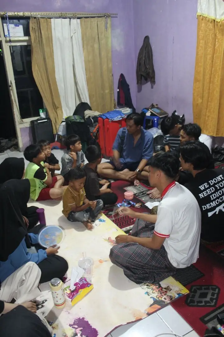 Momen yang penuh makna ini diisi dengan kegiatan melantunkan sholawat bersama termasuk seorang anak bernama Kamal yang sangat antusias dalam melantunkan sholawat. Dengan duduk melingkar di atas karpet, anak-anak dan mahasiswa larut dalam lantunan sholawat yang menyejukkan hati dan mempererat silaturahmi.
