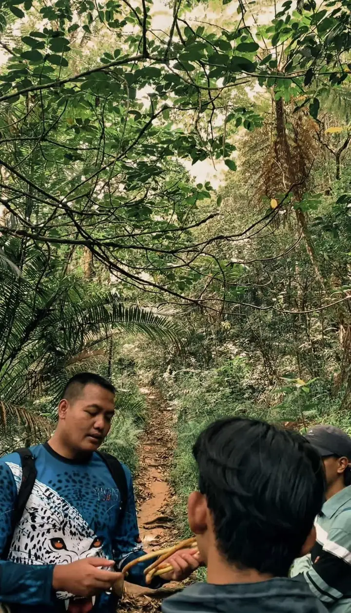 Perjalanan dilakukan dengan menyusuri jalan setapak dan medan yang cukup menantang, melewati pepohonan rindang, tanah yang lembap, dan semak belukar. Suasana alam yang sejuk dan tenang membuat kegiatan terasa menyenangkan dan menenangkan.
