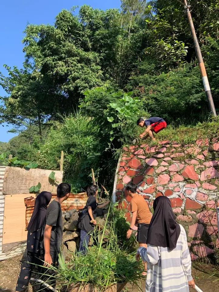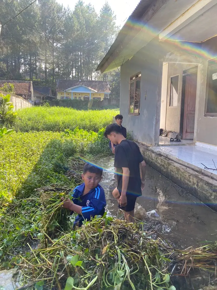 Pagi yang cerah di Desa Pagerwangi kami berkumpul bersama masyarakat setempat dan juga ditemani Bilal yang senang membersamai kami melaksanakan kegiatan bersih bersih, suasana langsung hidup saat kami bersama-sama bergotong-royong membersihkan jalan yang dipenuhi rumput liar, daun kering, dan sampah plastik. Tawa dan canda menjadi irama kebersamaan, sementara riuh suara sapu dan obrolan ringan mewarnai pagi itu.