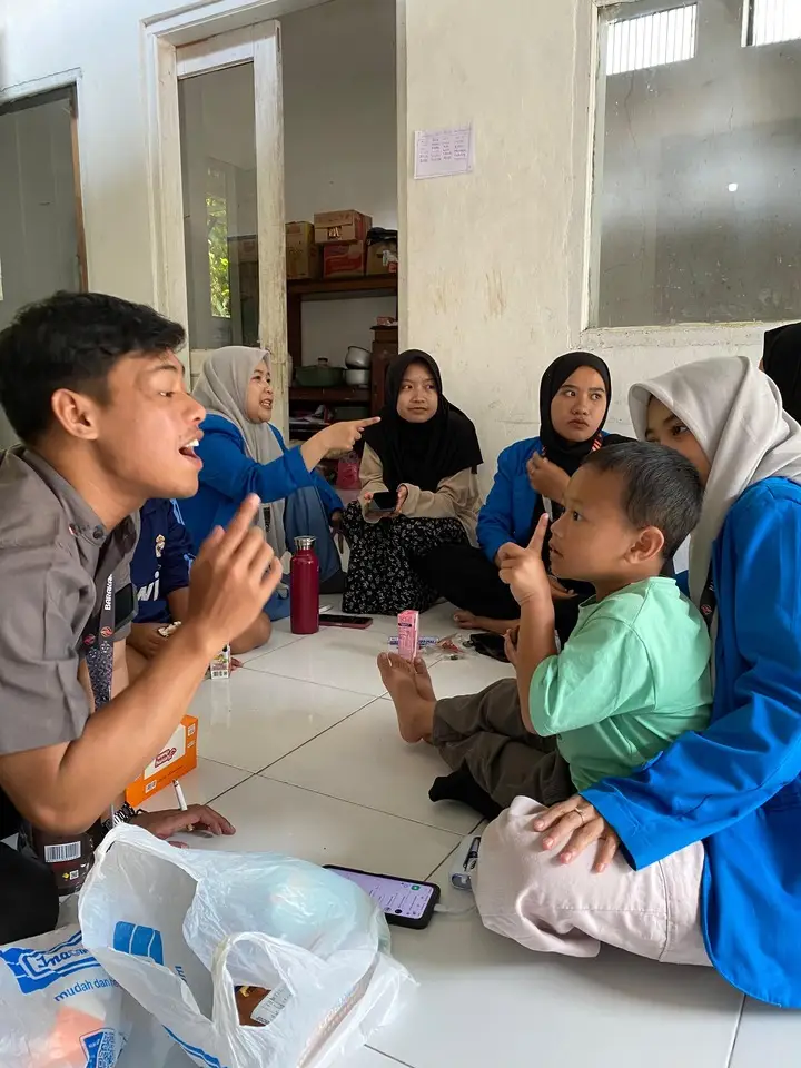 Sebagai penutup kegiatan hari ini, kami mengajak Akmal anak Desa Pagerwangi yang sangat aktif bulak balik ke posko untuk bergabung dan bermain di posko dengan kawan kawan mahasiswa, keseruan canda tawa hadir di dalam moment seperti ini