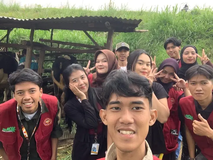 Memasuki sore hari, kegiatan dilanjutkan dengan kunjungan ke sebuah peternakan sapi perah yang menjadi salah satu potensi unggulan desa. Di sana, kami belajar secara langsung mengenai proses pemeliharaan hewan ternak, teknik memerah susu, serta sistem distribusi produk susu segar. Pengalaman ini memberikan pemahaman baru mengenai pentingnya manajemen peternakan yang baik, serta peluang pengembangan produk turunan seperti yogurt, keju, dan susu pasteurisasi yang dapat menambah nilai ekonomi desa.